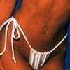 おしりの部分が細いヒモだけで告ャされるショーツ。後はパンティをはいていないようになり、パンティーラインが全く見えない利点がある。